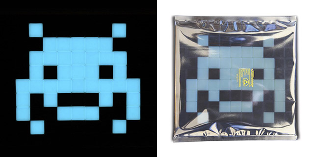 Lot 17, “Invasion Kit #15, Glow in the Space” by Invader, 2013, black and phosphorescent tiles,